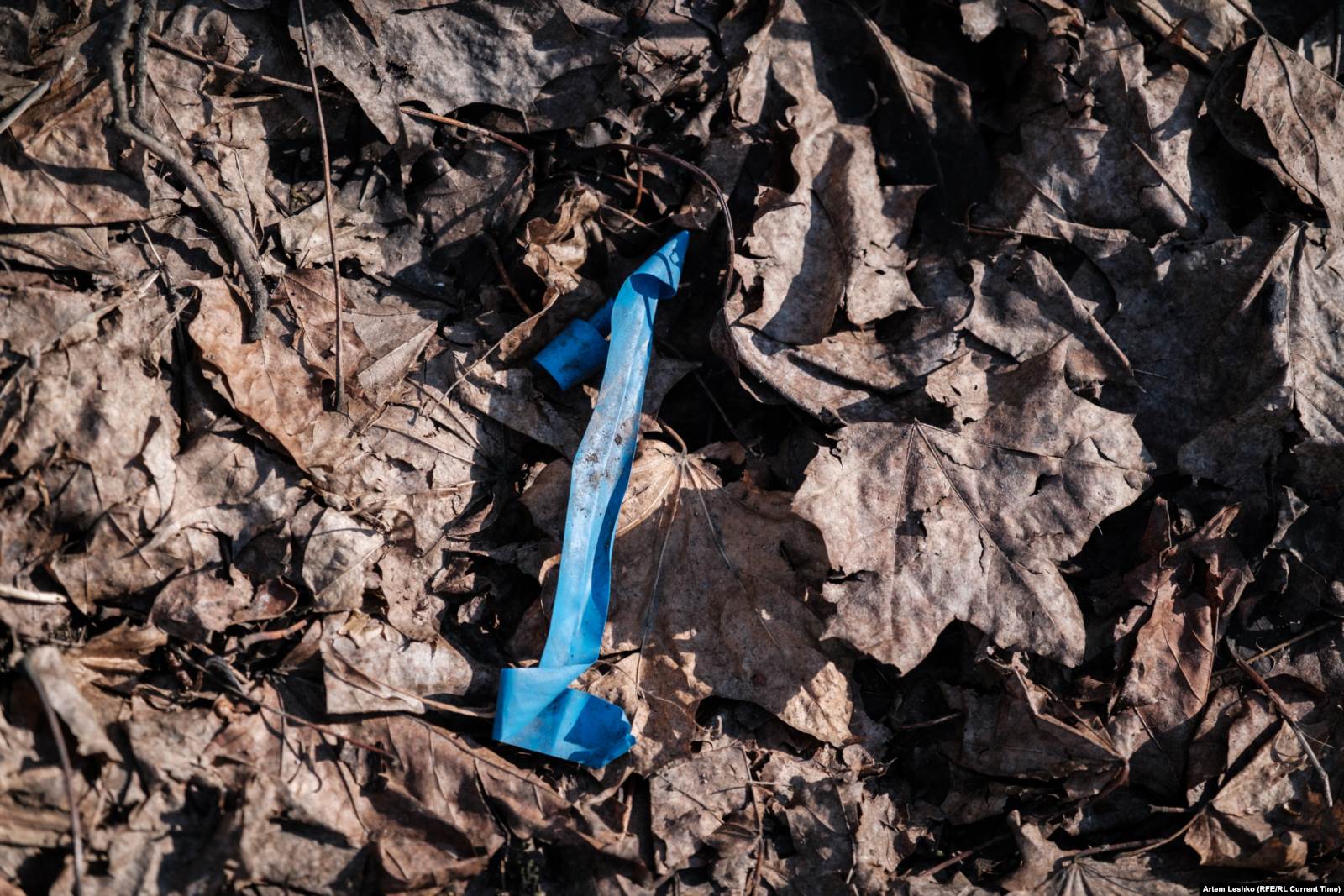 Во втором парке, разбитом при вузе, мы сходим с асфальтированной пешеходной дорожки и сразу натыкаемся на черные и синие куски изоленты, оставшиеся после распаковки настоящих закладок. У корней деревьев и кустов – разрытый грунт.